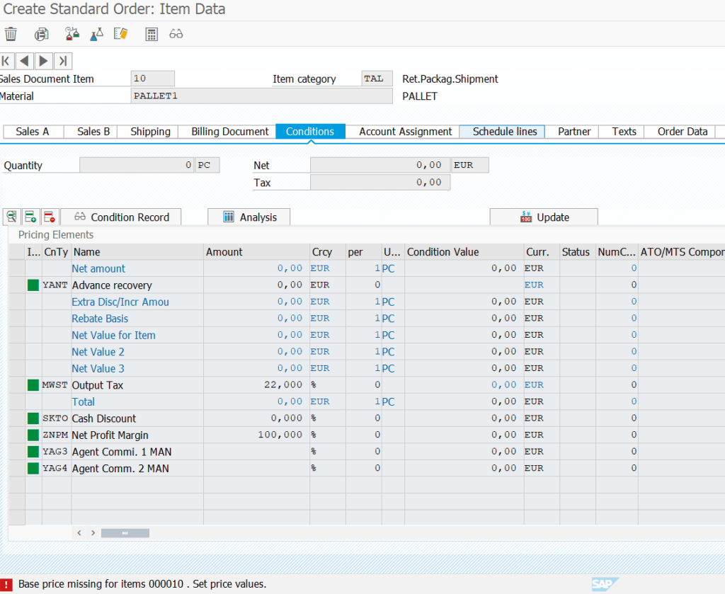 example, prices, surcharges, or discounts, and are stored in the system in condition records.